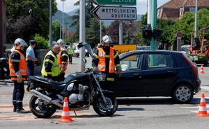 Le motard a heurté deux véhicules hier après-midi à Wintzenheim. (Photo DNA-Nicolas Pinot)